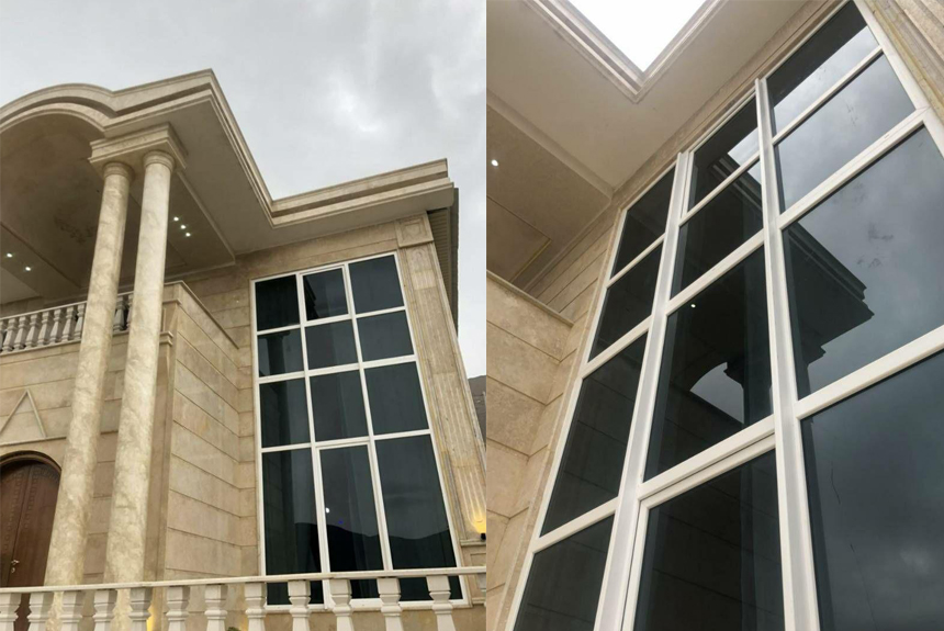 اجرای پنجره Upvc با ارتفاع 6 متر به صورت کرتین وال و پروفیل تقویتی برای استحکام بیشتر